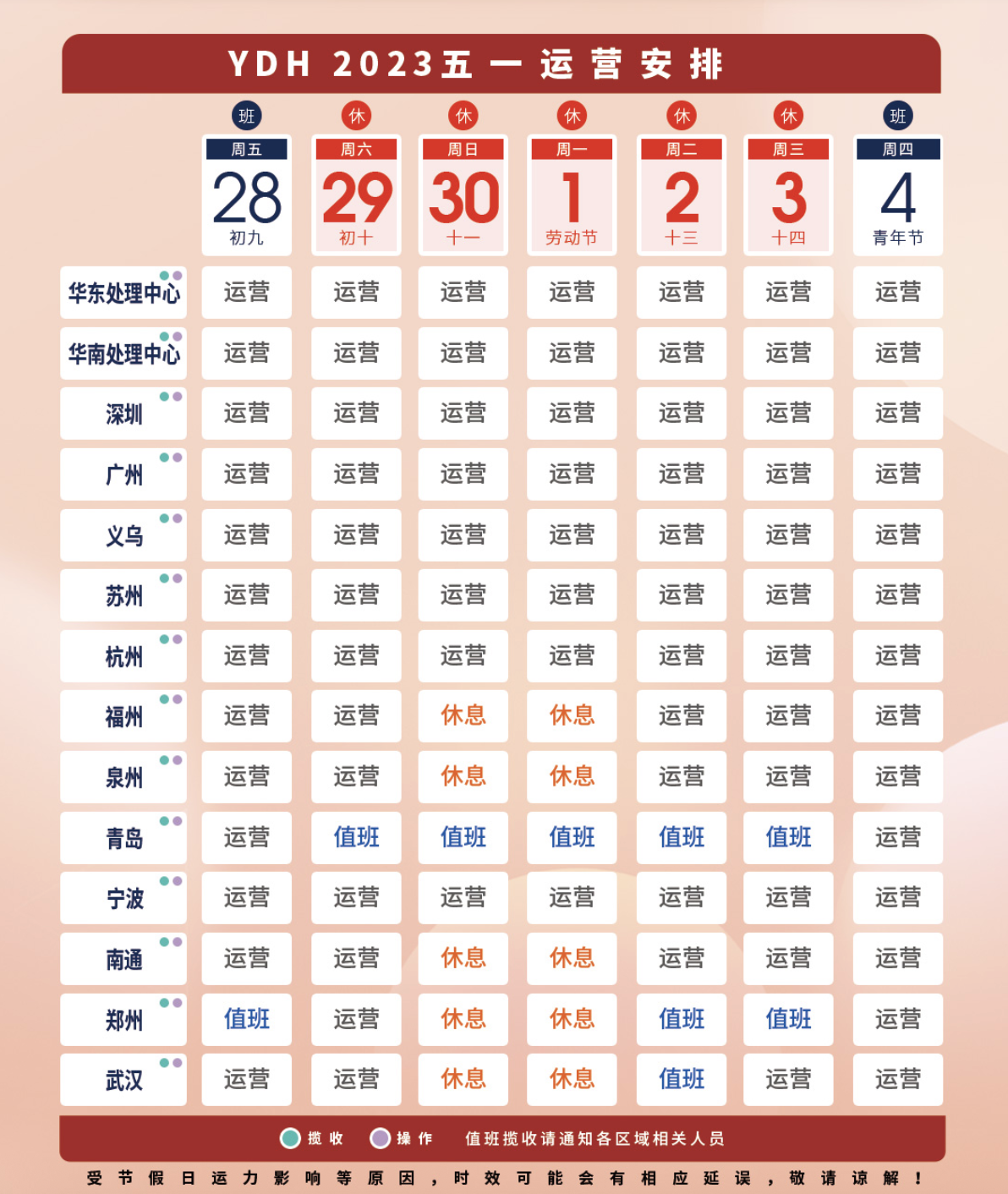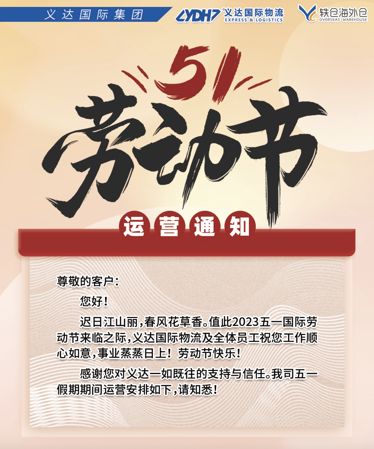 Calendario de operaciones de Yida International Logistics para el Día del Trabajo de 2023