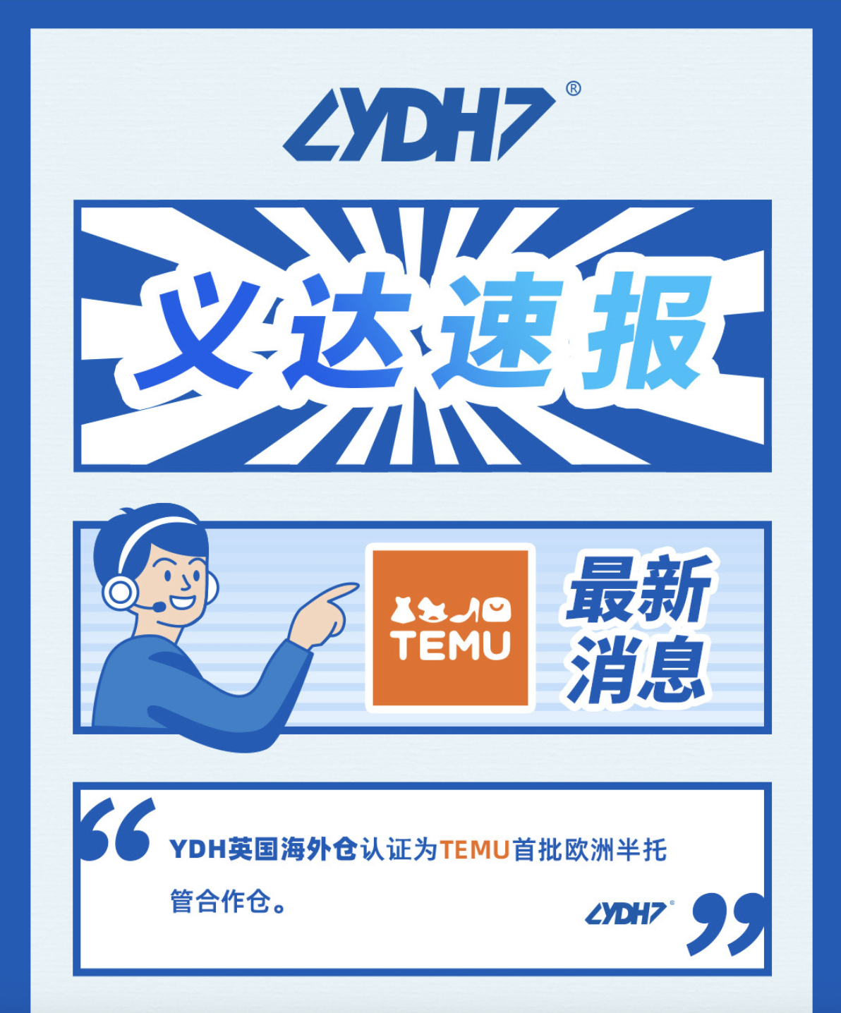 Tras superar las pruebas de aceptación en diversos aspectos, como la integración de sistemas y la construcción de almacenes, YDH y Temu han profundizado aún más su cooperación. El almacén de YDH en el Reino Unido ha sido certificado oficialmente como uno de los primeros almacenes europeos semigestionados de TEMU, logrando así una integración completa con TEMU tanto a nivel operativo como de sistemas.