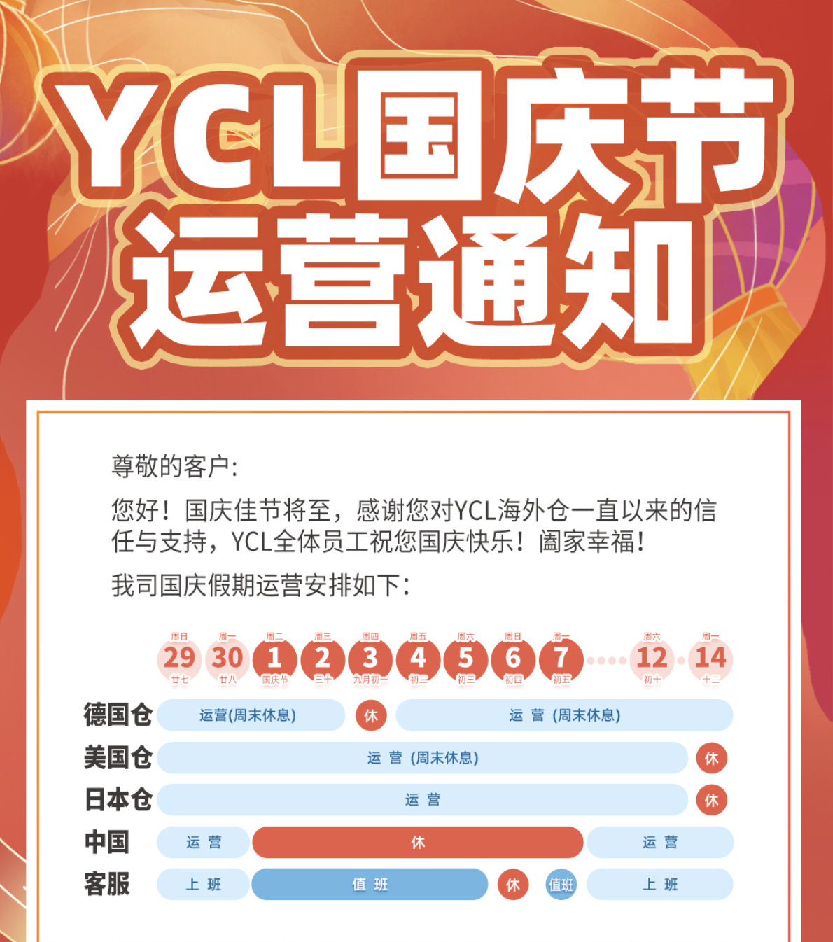 Calendario de operaciones del Día Nacional del Almacén Transfronterizo de Yida y Yicang para 2024