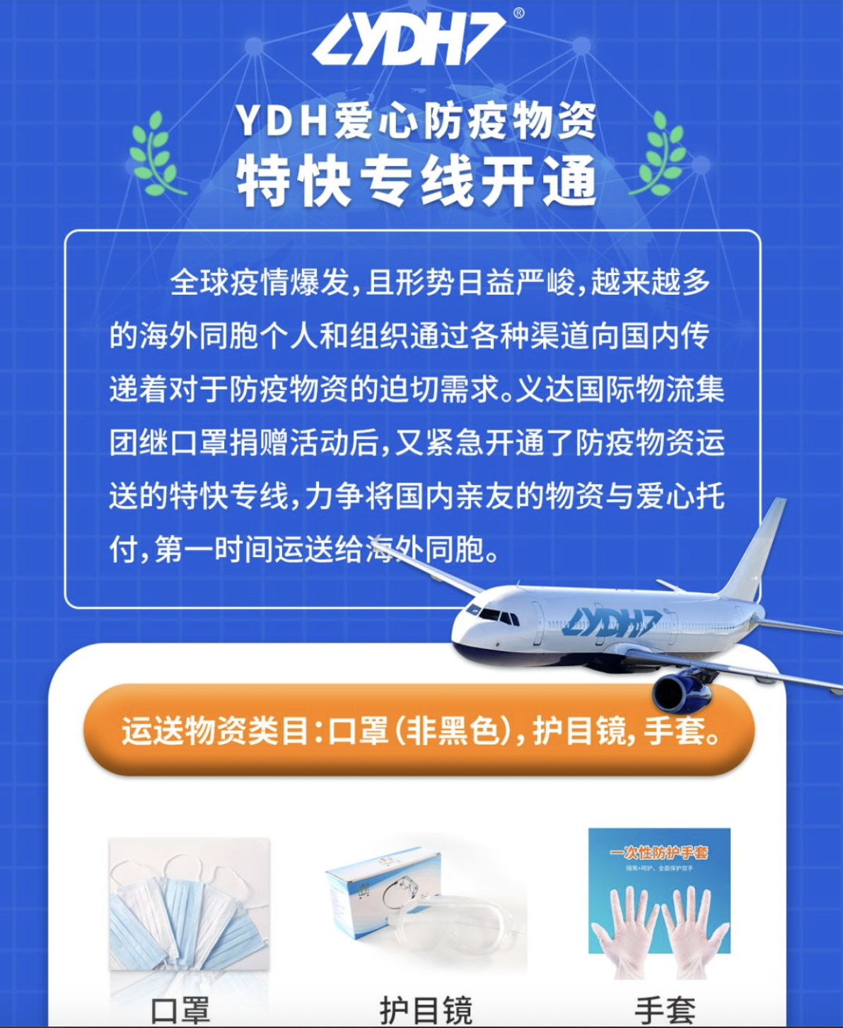 Ante el brote mundial de la pandemia y la escasez de equipos de protección, China, en plena lucha contra la epidemia, no ha olvidado a sus compatriotas. Empresas y particulares han tendido la mano, proporcionando ayuda a las comunidades en el extranjero. Tras su campaña de donación de mascarillas, Yida International Logistics ha habilitado de nuevo, con carácter de urgencia, una línea exprés especial para el envío de equipos de protección, ofreciendo los máximos descuentos para apoyar y garantizar la entrega transfronteriza de estos suministros.